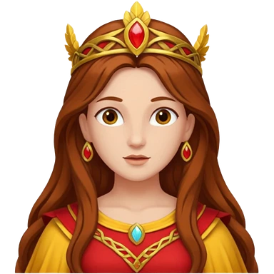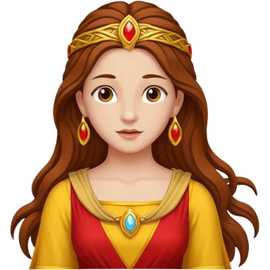 Vesta, Hearth Goddess from Rome Mythology with long brown hair, red and yellow outfit emoji