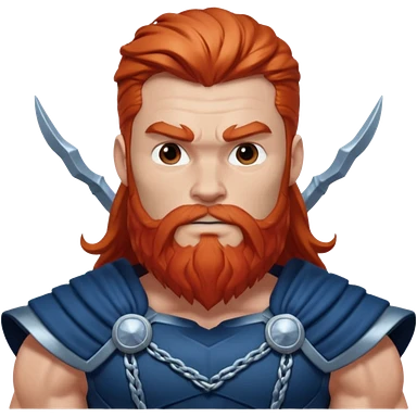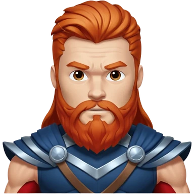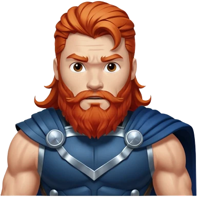 Thor, Thunder God from Norse Mythology with long red and beard, dark blue and silver outfit emoji