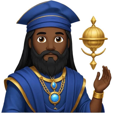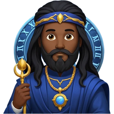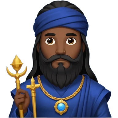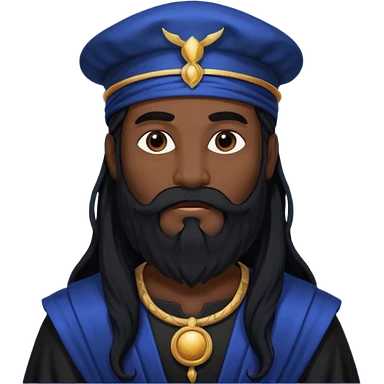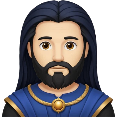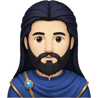 Saturn, Time God from Rome Mythology with long black hair and beard, black and dark blue outfit emoji