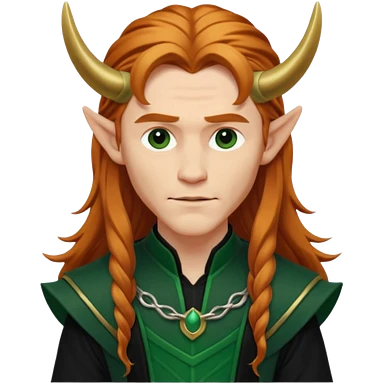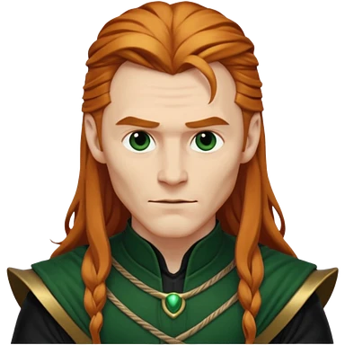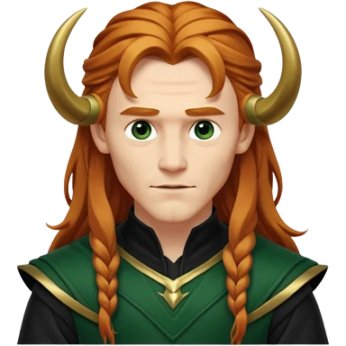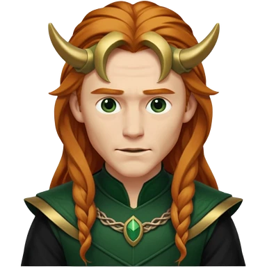 Loki, Mischief God from Norse Mythology with long reddish blonde hair, dark green and black outfit emoji