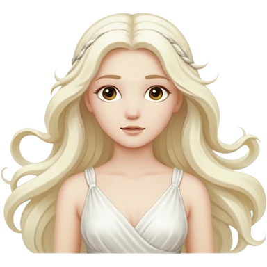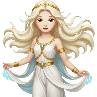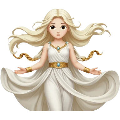 Aura, Breeze Goddess from Rome Mythology with long white blonde hair, white outfit emoji