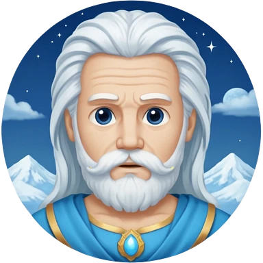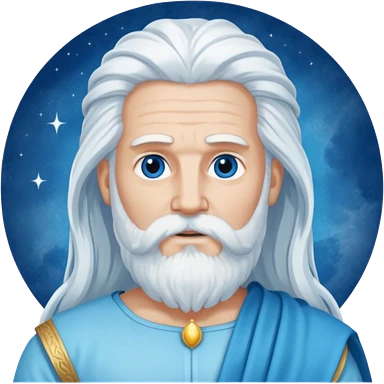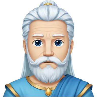 Jupiter, Thunder God from Rome Mythology with long white hair and beard, blue and white outfit emoji | AI Emoji Generator