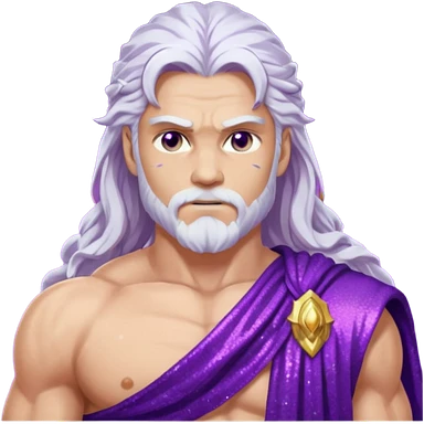 Jupiter, Thunder God from Rome Mythology with long white hair, purple and white outfit emoji | AI Emoji Generator