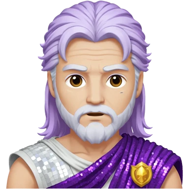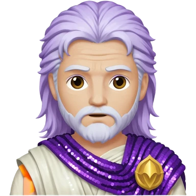 Jupiter, God of the Sea from Gods and Goddesses with long white hair and beard, lilac sequin outfit emoji