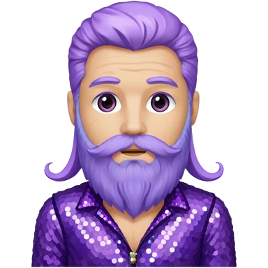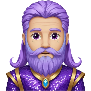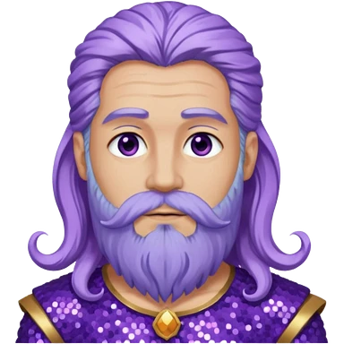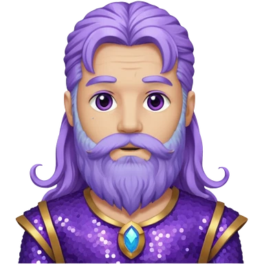 Jupiter from Ancient Gods with lilac skin, long periwinkle hair and beard, purple sequin outfit emoji