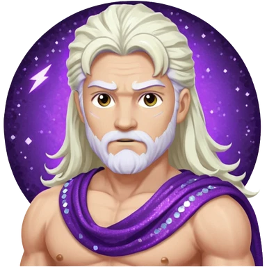 Jupiter Thunder God with long white hair, purple sequin toga emoji