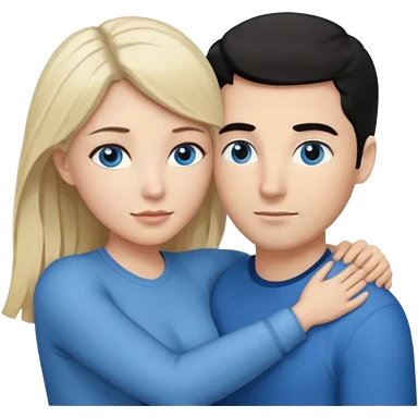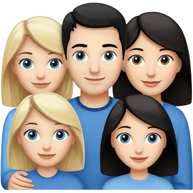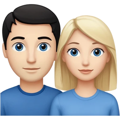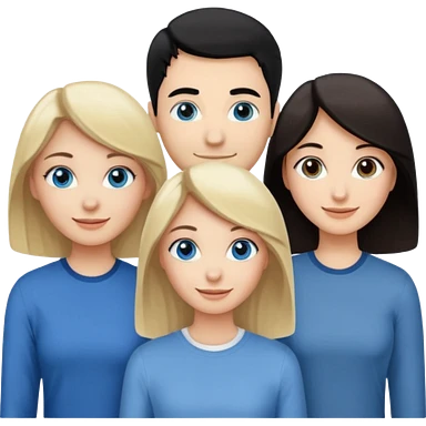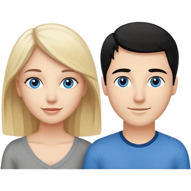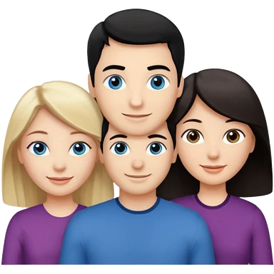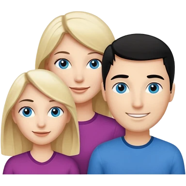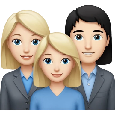 Blond woman with blue eyes on left. And a Man with black hair and grey eyecolor in the middle. And a blank woman with brown hair and grey eyes on the right. Happy together emoji