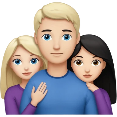 3 people. Throuple. Blank woman with blond hair and blue eye color on left. a blank man with black hair and grey eye color in the middle. And a blank woman with brown hair and grey eye color on the right. Holding each other emoji