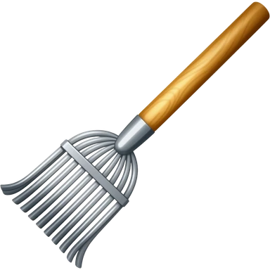 A rake that has flayed out prongs, and a thicker rod/handle emoji