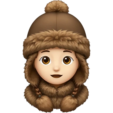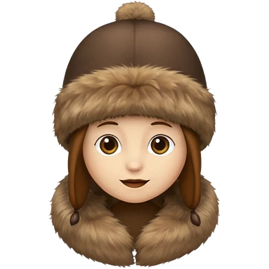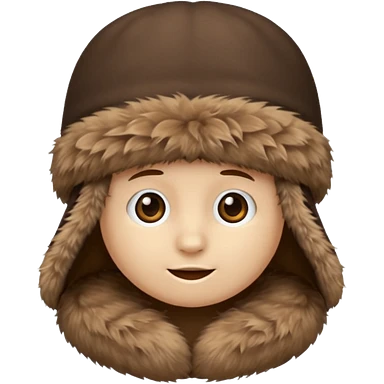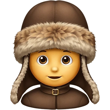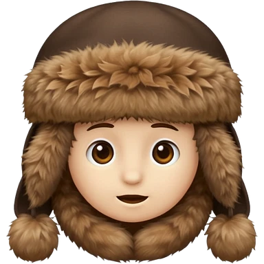 Just the head of a cute brown bear with green eyes, wearing white fur ushanka hat with highly detailed realistic Russian Federation coat of arms, showing double-headed eagle with crowns, scepter, orb and St. George shield, iOS emoji style emoji