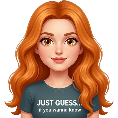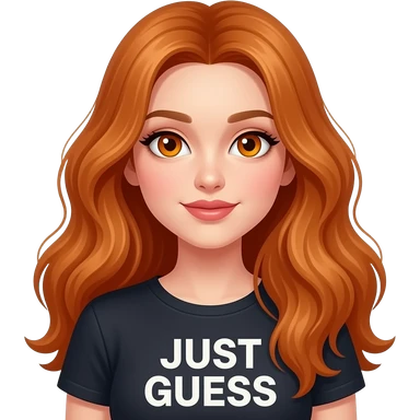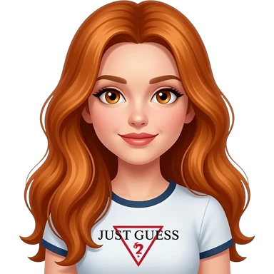 sexy girl with overlong ginger hair and ginger eyes a top with JUST GUESS... written on it emoji