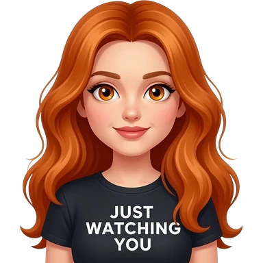 sexy girl with overlong ginger hair and ginger eyes a top with ... JUST WATCHING YOU written on it emoji