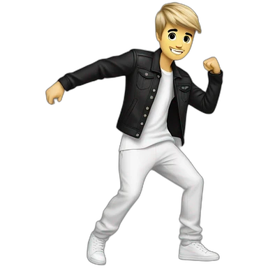 Justin Bieber, around 16, casual clothes, singing into mic emoji