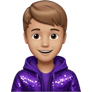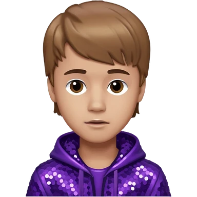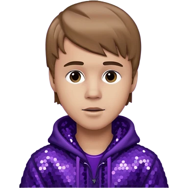 Justin Bieber with light skin, dark blonde hair, purple sequin outfit emoji