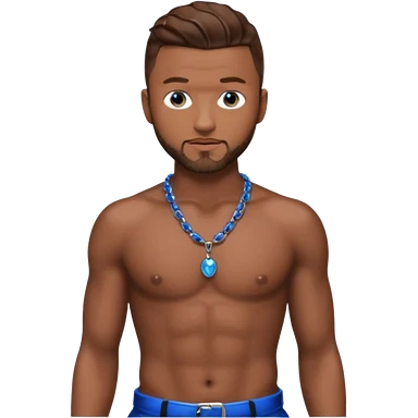 Justin Bieber with metallic black pants, shirtless with necklace emoji