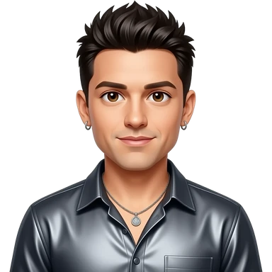 Chris Kirkpatrick from NSYNC with brown eyes, black 90s spiky hair, dark grey metallic shirt, necklace and earrings emoji