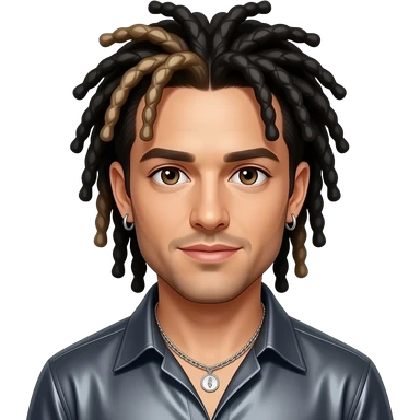Chris Kirkpatrick from NSYNC with brown eyes, black 90s pineapple ponytail dreads with white-blond highlights, dark grey metallic shirt, necklace and earrings emoji