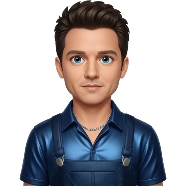 JC Chasez from NSYNC with blue eyes, dark brown hair, dark blue metallic shirt, dark blue metallic baggy pants, silver necklace emoji