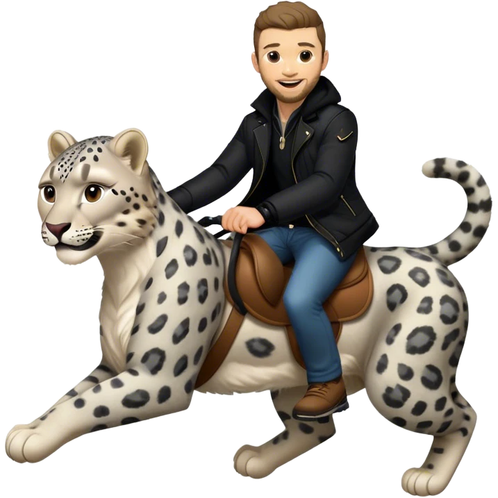 Justin Timberlake riding a snow leopard emoji | AI Emoji Generator