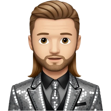 Justin Timberlake with light brown hair, grey sequin tour outfit emoji | AI Emoji Generator