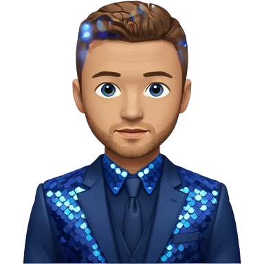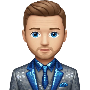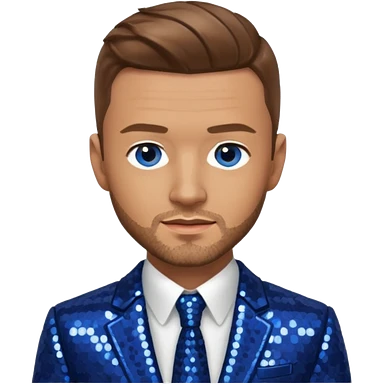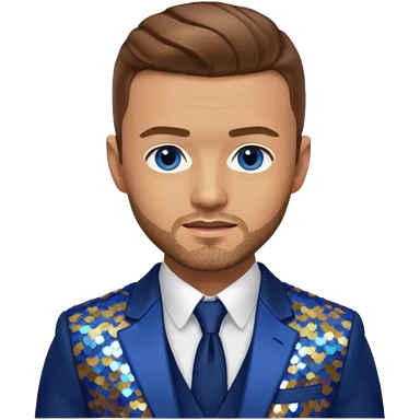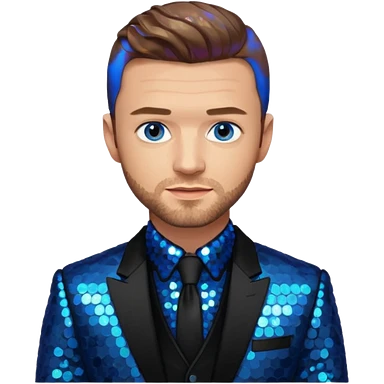 Justin Timberlake with light brown hair, blue eyes, sequin navy blue suit jacket emoji