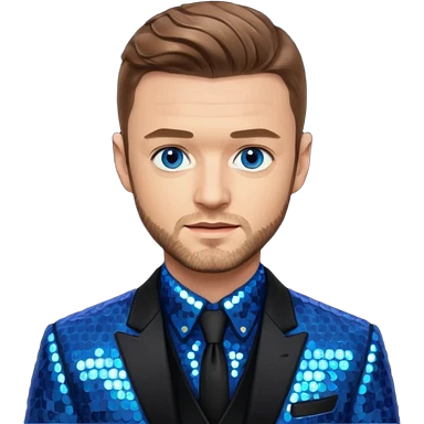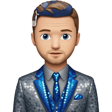 Justin Timberlake with light brown hair, blue eyes, sequin black suit jacket emoji