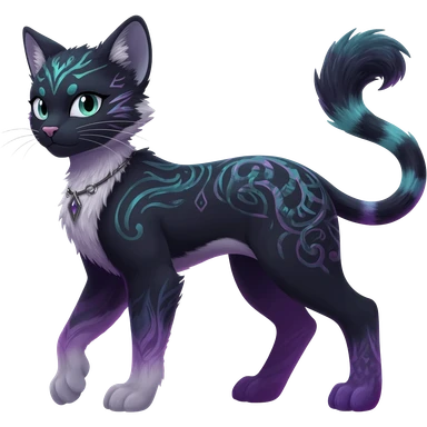 Kawaii dark edgy fantasy feline-vernid-sergal-fursona animal creature with a tufted tail full body with intricate markings emoji