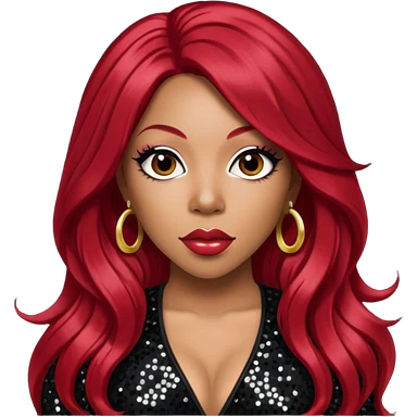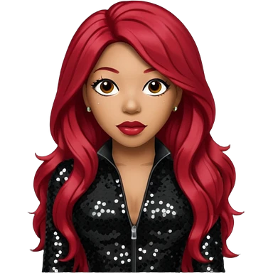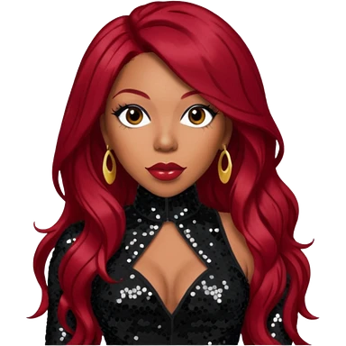 K. Michelle with long dark red hair, black sequin outfit emoji