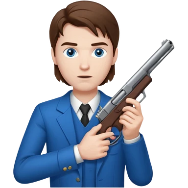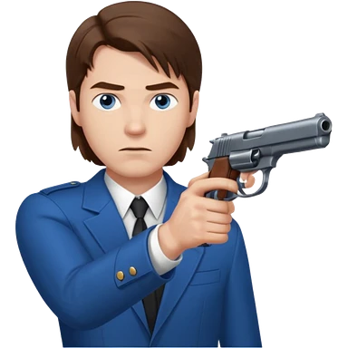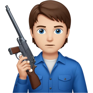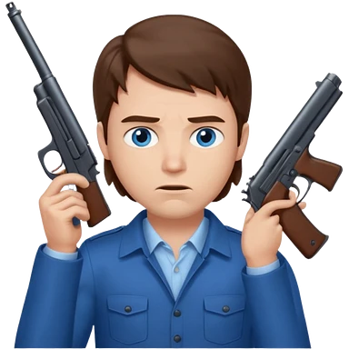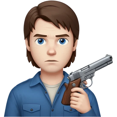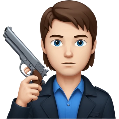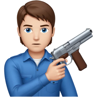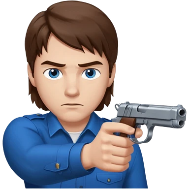 guy w medium long brown hair and blue eyes with gun pointed towards him emoji