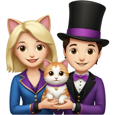 magician couple and their pet cat emoji