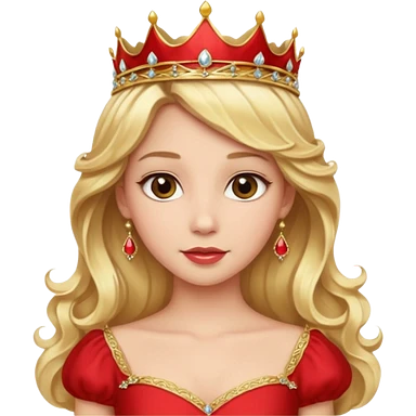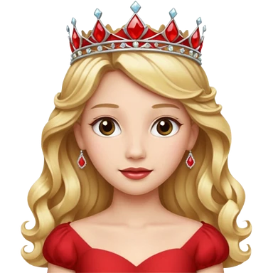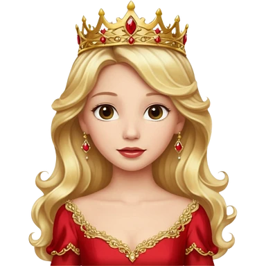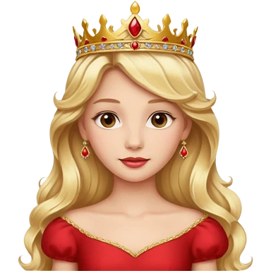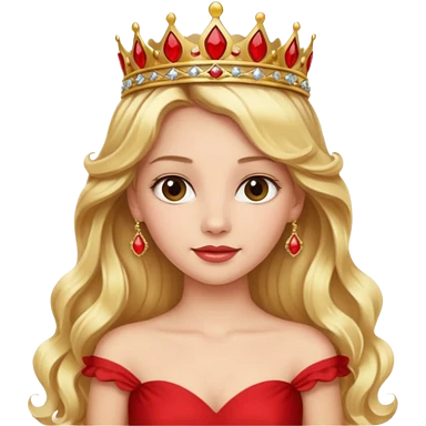 Princess in red Dress with gold Tiara, long wavy Blonde Hair emoji