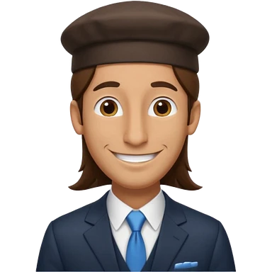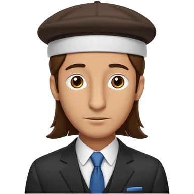 Man with a long nose wearing a suit and kippah, he has long brown hair emoji