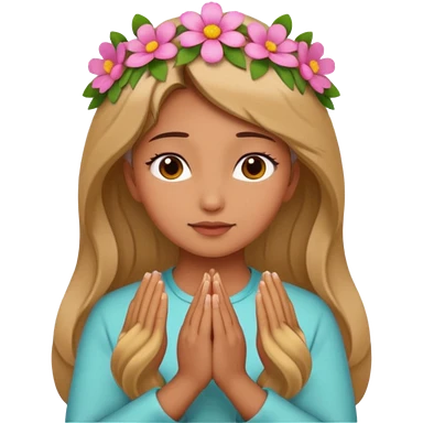 ผู้หญิงพนมมือสวัสดีทัดดอกไม้ที่หู emoji