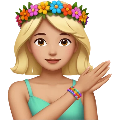 ผู้หญิงหันข้าง พนมมือสวัสดี มีดอกไม้คาดที่หัว emoji