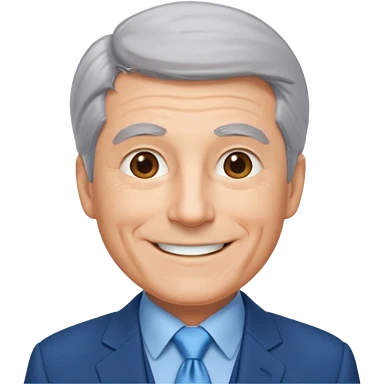 Create an emoji of a 62-year-old man in a blue suit and light blue tie with gray hair. emoji