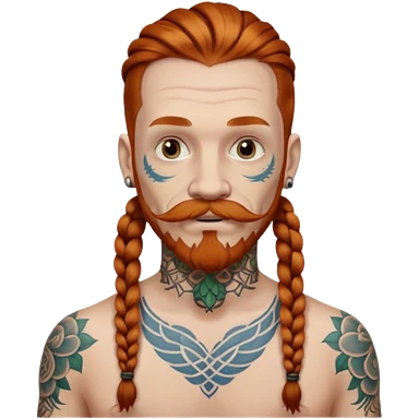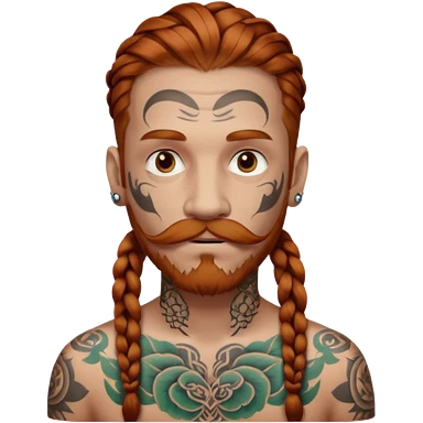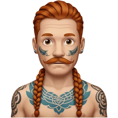 dark ginger braids man very white mustache old very tattoed with the whitest mustache ever emoji