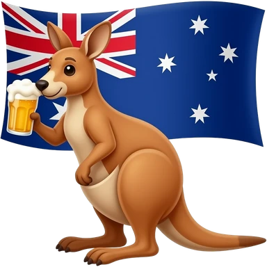 kangaroo drinking beer with a austalian flag in the background emoji