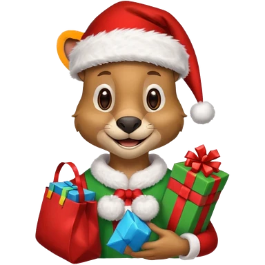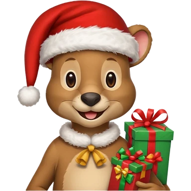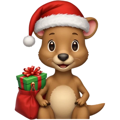 kiwi bird wearing Santa hat and kangaroo wearing Santa hats emoji