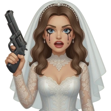 bride holding a big gun looking like a crazy maniac with runny mascara emoji