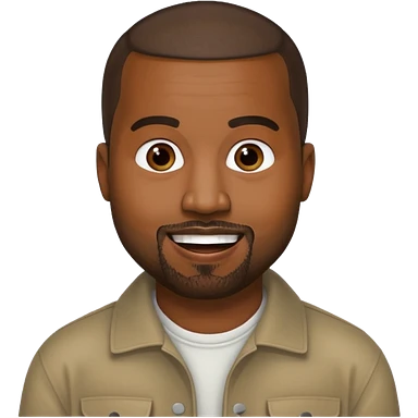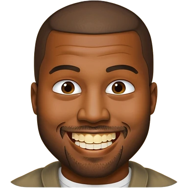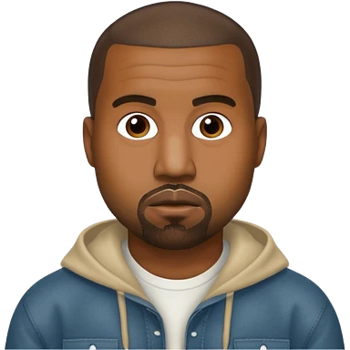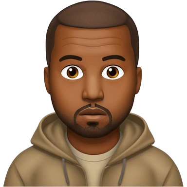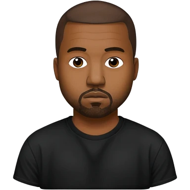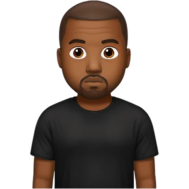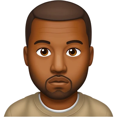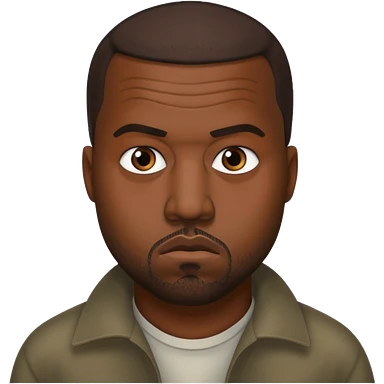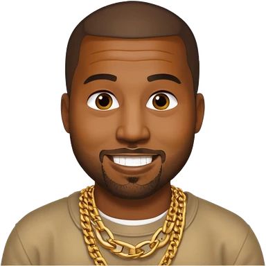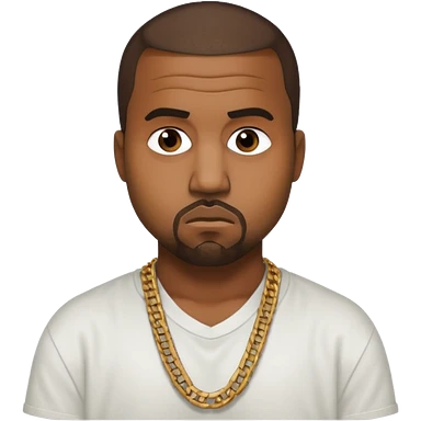 Kanye West staring blankly at a camera wearing a white shirt and a gold chain that slightly shows in the photo. emoji