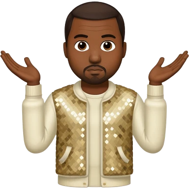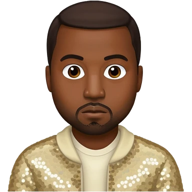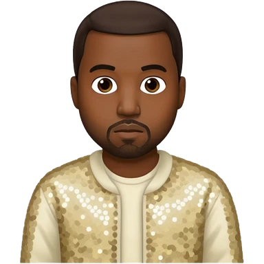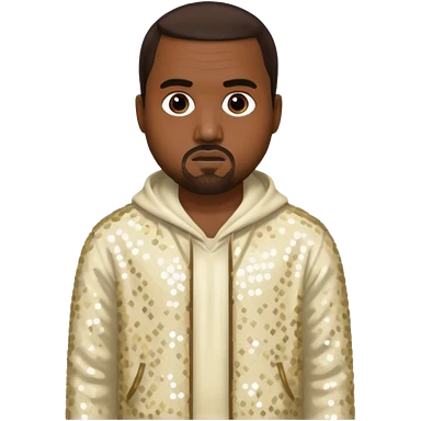 Kanye West with dark brown hair, cream sequin outfit emoji