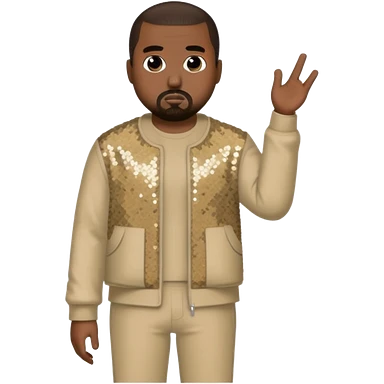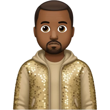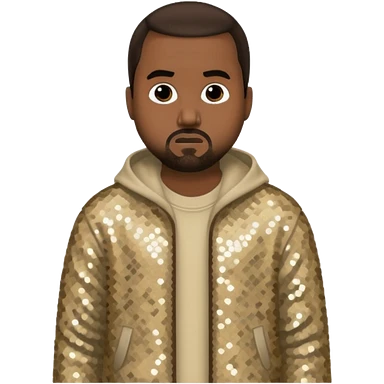 Kanye West with dark brown hair, beige sequin outfit emoji