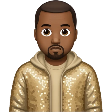 Kanye West with dark brown hair, cream sequin outfit emoji