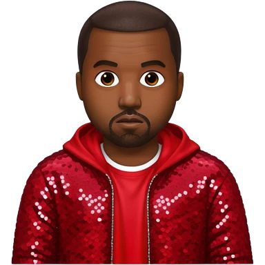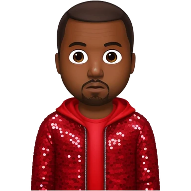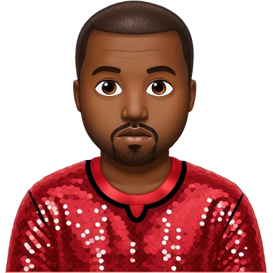 Kanye West with dark brown hair, red sequin outfit emoji