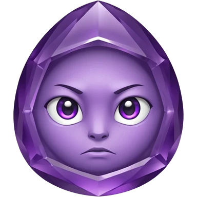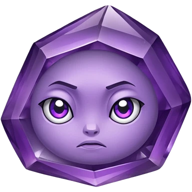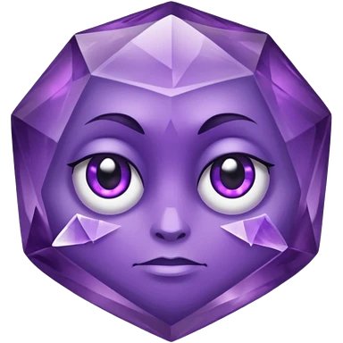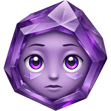 Single gemstone amethyst character, squat and heavy like a rock, with carved facets with eyes emoji