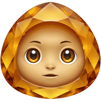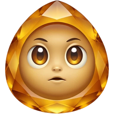 Single gemstone rock character, warm golden citrine, squat and heavy like a rock, with carved facets emoji