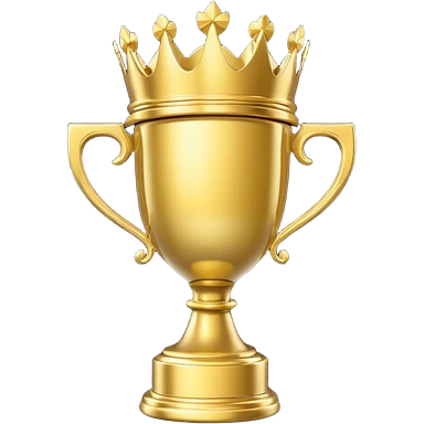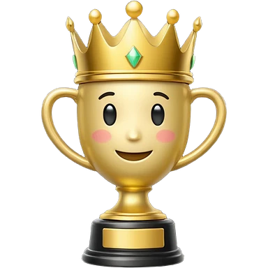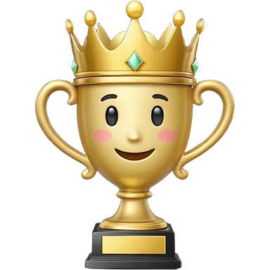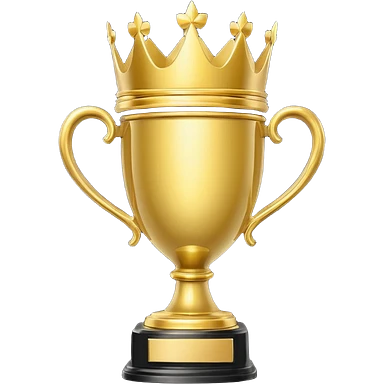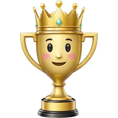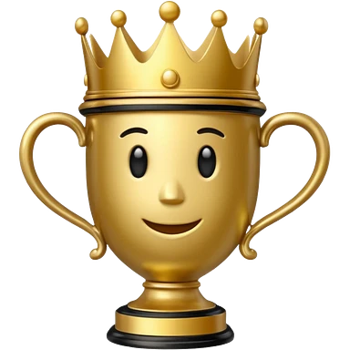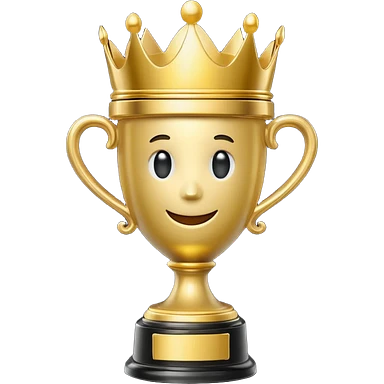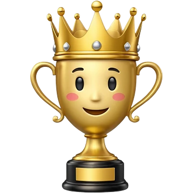 Win Emoji Glossy 3D emoji showing a gold trophy with a small crown, glowing effect, black and gold theme. emoji