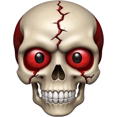 Lose Emoji Glossy 3D emoji of a skull with red eyes, slightly cracked, dark red and black tones. emoji