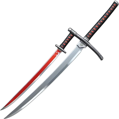 A fierce Kenku samurai with sleek black feathers, piercing crimson eyes glowing under the shadow of his straw hat. His sharp beak is partially covered by a black cloth mask, adding to his air of mystery. He wears layered black and crimson armor, intricate silver engravings etched into the metal plates. A long, tattered cloak billows behind him, worn from countless battles. His clawed hands grip the hilt of a curved katana, its polished blade reflecting the moonlight. Wisps of mist swirl around his taloned feet as he stands motionless emoji