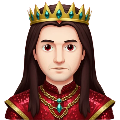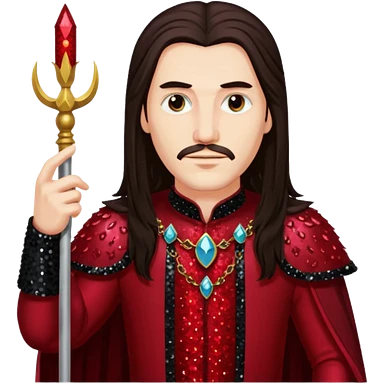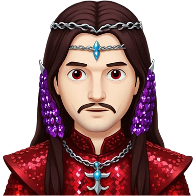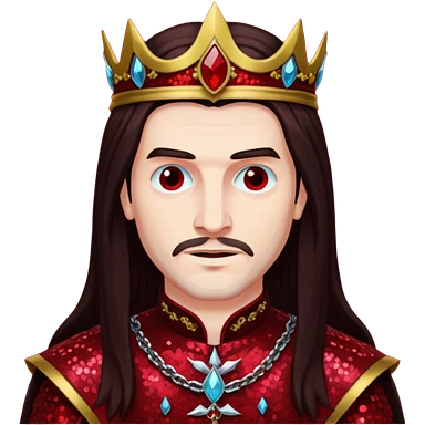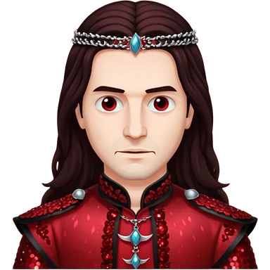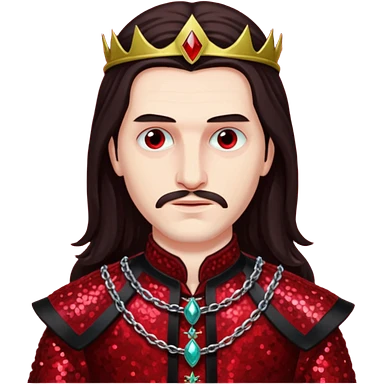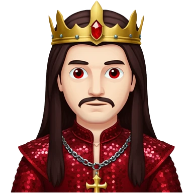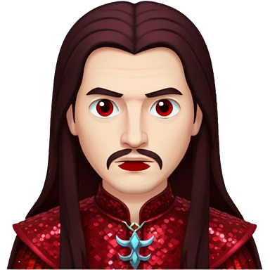 Vlad Tepes with long dark brown hair, dark red sequin outfit emoji